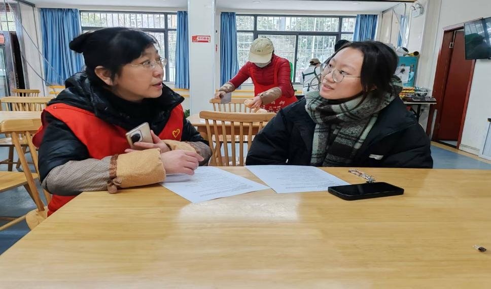 隨后,隊員們與食堂工作人員進行了深入交流。她們不僅向工作人員發放了精心設計的問卷,還與工作人員進行面對面訪談,詳細詢問了食堂的日常運營情況,包括食材采購渠道、食品制作流程、營養搭配方案等。工作人員們認真填寫問卷,并對隊員們提出的問題一一耐心解答,讓隊員們對養老機構食堂的工作有了更直觀、更全面的認識。