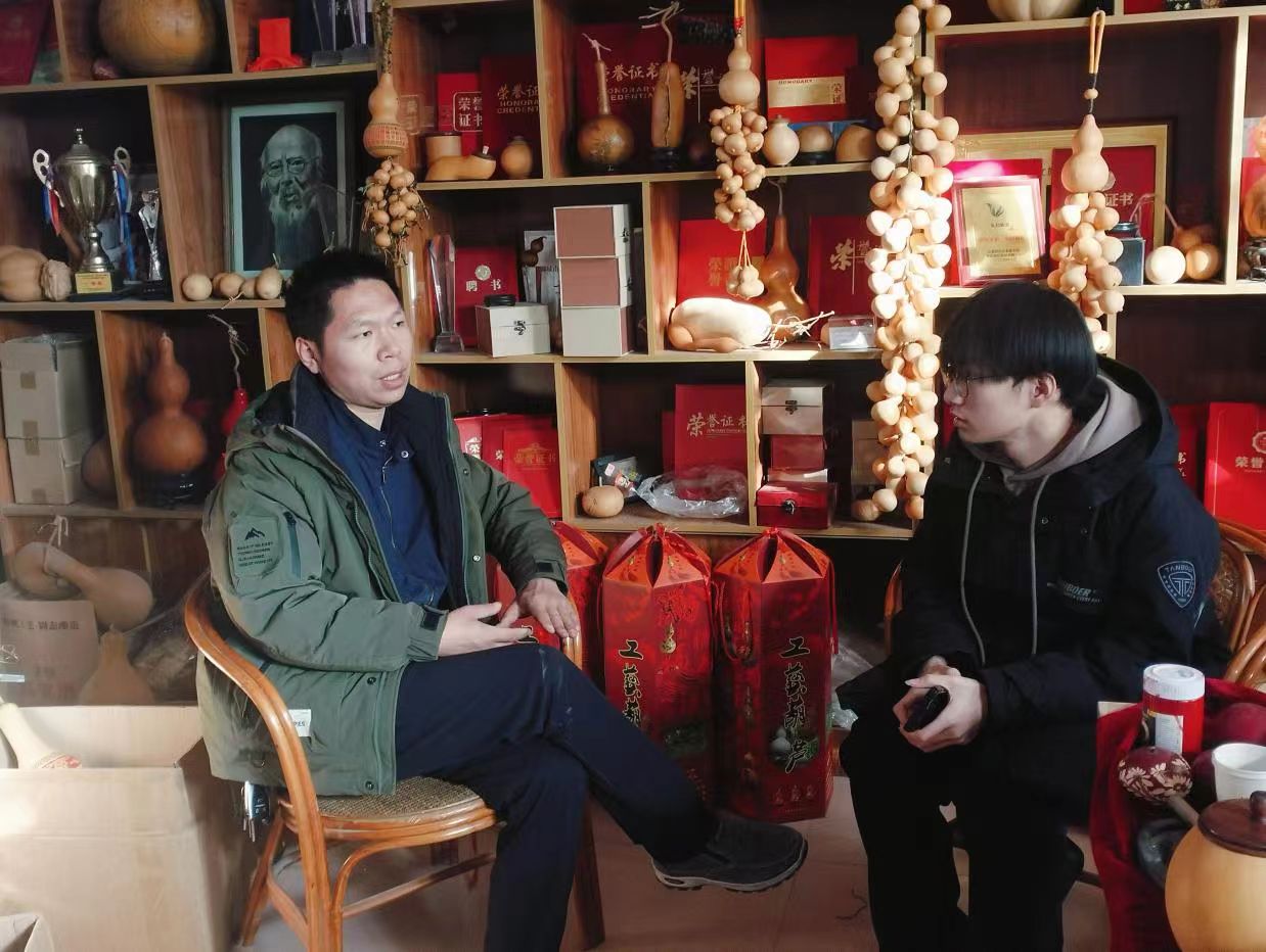為使同學們切身領略到傳統技藝魅力,引發大學生群體對非遺保護傳承的深度關注。2025 年 1 月 9 日至 10 日,2023 級 2 班逸瓠匠心團于聊城市東昌府區,開啟一場雕刻葫蘆非遺技藝的探尋之旅,并對省級傳承人王樹峰進行專訪。