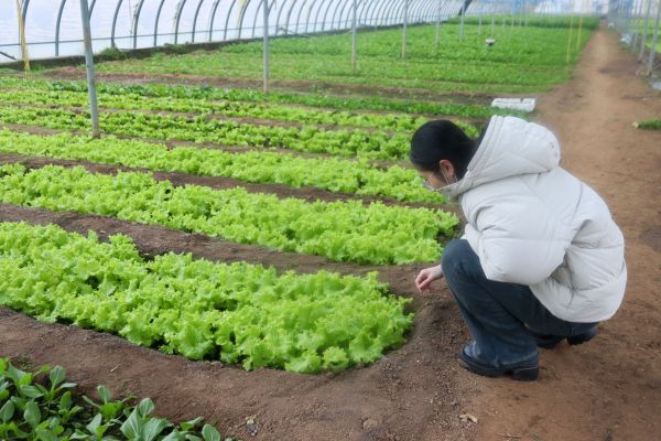圖為實踐隊員在觀察大棚中的有機蔬菜。李怡崢 供圖