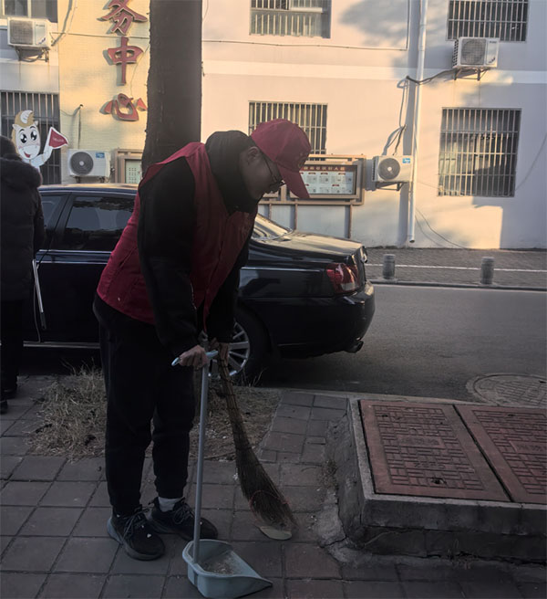 在清掃過程中,郭暢手持掃帚和簸箕,認(rèn)真清理樓棟周邊的雜物、綠化帶中的垃圾以及墻角堆積的灰塵。盡管天氣寒冷,但他的熱情絲毫未減。經(jīng)過兩個半小時的努力,社區(qū)環(huán)境煥然一新,原本堆積的垃圾被清理干凈,樓道口變得寬敞明亮,綠化帶也恢復(fù)了整潔美觀。