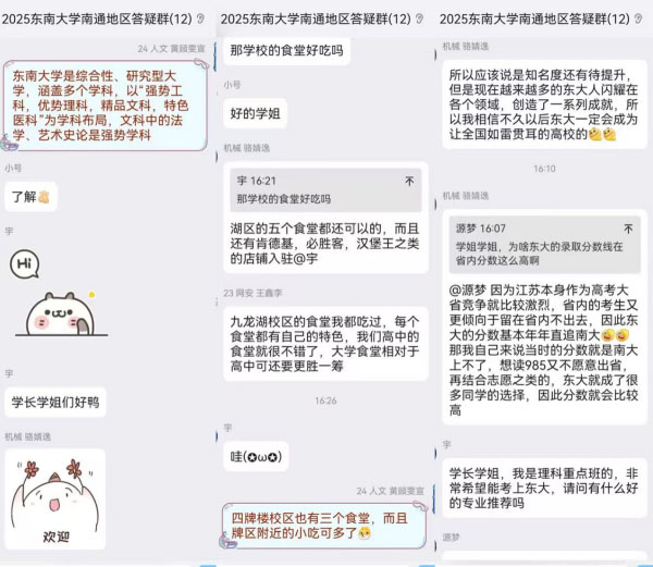 為了幫助更多未能到場的同學,東大學子們還特別安排了線上答疑環節。通過微信群、QQ群等平臺,學長學姐們耐心解答了學弟學妹們關于高考備考、志愿填報、專業選擇等方面的疑問。