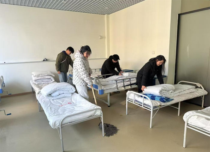 圖為實踐團成員孫銘浩、高嘉欣、孟令飛、盧娜打掃老人房間