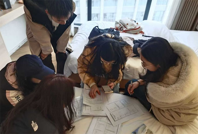 圖為“卉行隊(duì)”隊(duì)員們對(duì)收集來的問卷進(jìn)行數(shù)據(jù)整理分析,云南財(cái)經(jīng)大學(xué)“卉行隊(duì)”胡多群 供圖