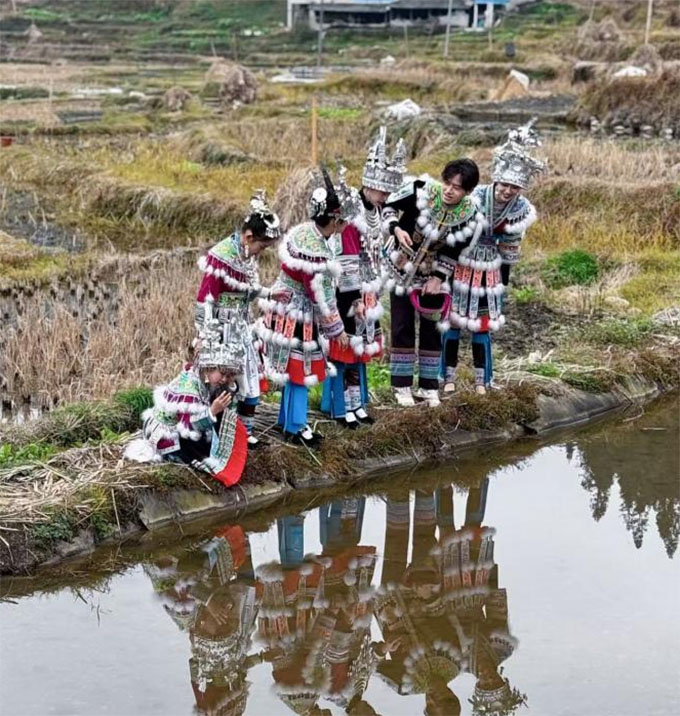 (圖為團隊成員體驗苗族文化)