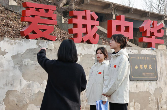 圖為負責人為團隊講述雙山抗戰遺址群歷史