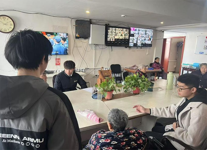 實踐成員在工作人員的安排下參觀了老人門的居住公寓。在工作人員的安排下時間成員迅速展開工作,陪老人聊天聽老人最近的生活情況以及當天的心情如何,或者幫老人準備點水果,老人也因實踐團的到來感到暖心。