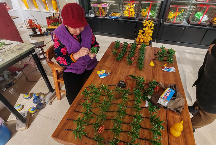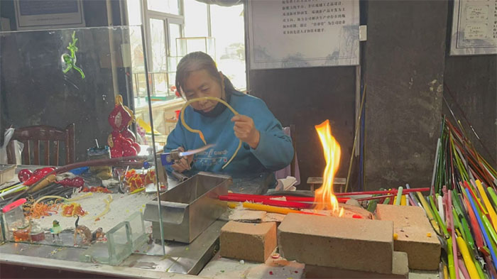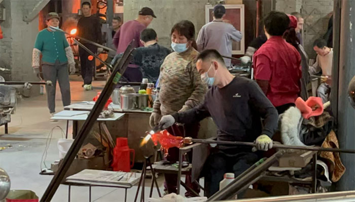 在制作車間,團隊成員們認真觀看了琉璃制作師傅的演示。只見師傅們熟練地將燒至通紅的琉璃料從熔爐中取出,快速轉動鐵桿,憑借豐富的經驗和精準的手感,讓琉璃料在高溫下逐漸軟化、變形,最終成為一件件栩栩如生的藝術品。團隊成員們紛紛被師傅們的高超技藝所折服,不時發出陣陣驚嘆。