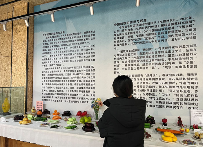 1月14日,團隊成員來到淄博領尚琉璃文化創意園。踏入園區,精美的琉璃制品琳瑯滿目,色彩斑斕,讓人目不暇接。在這里,團隊成員有幸學習了淄博琉璃的制作工藝與過程。從原料的選擇,到高溫熔爐中熊熊烈火的煅燒,再到工匠們憑借精湛技藝塑形、雕琢,每一個環節都蘊含著深厚的文化底蘊和工匠們的心血。