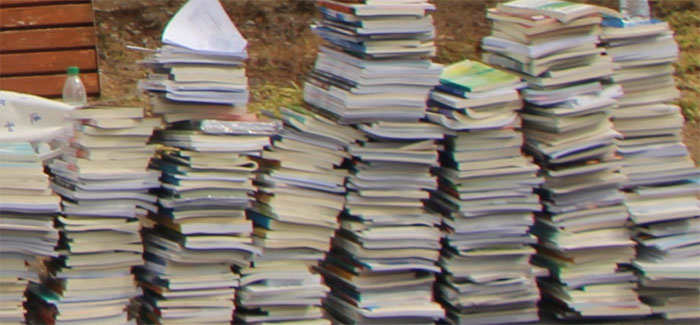 圖3為同學們捐的書籍已堆積成山(霍達 供圖)