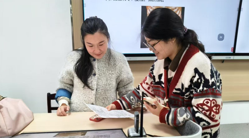 圖為與老師交流生命教育心得。魯焱冰 供圖