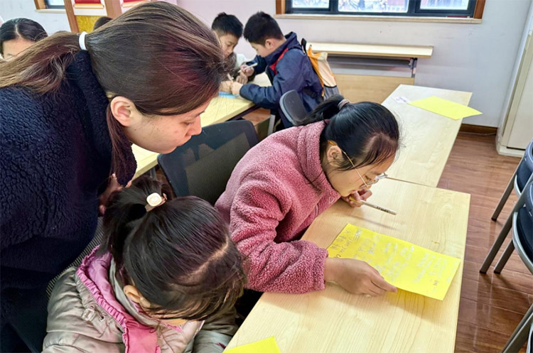 在“童心回信工作坊”活動中,大學生志愿者引導孩子們用中英文書寫“新時代家書”。彩色卡紙上,孩子們充分發揮自己的想象力和創造力,有的用稚嫩的筆觸描繪出心中祖國的繁榮景象,有的寫下對革命先烈的感恩與敬仰,還有的向家人朋友傾訴自己的心聲。外國語學院學子們穿梭其間,既指導語法規范,更注重情感表達,讓跨語言的文化共鳴潤物無聲。