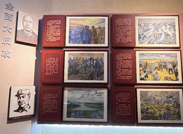 第二展廳聚焦“抗日烽火”,重點呈現了泰州軍民在抗日戰爭中的英勇抗爭。展廳內,一幅巨大的浮雕格外引人注目,它刻畫了泰州兒女與日軍殊死搏斗的激烈場景,讓人仿佛置身于那個戰火紛飛的年代。團隊成員駐足凝視,對革命先輩們的英勇無畏和頑強拼搏精神深感敬佩。