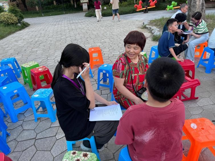 實(shí)踐團(tuán)隊在東二社區(qū)“春風(fēng)里”服務(wù)中心、黨群服務(wù)中心以及大關(guān)科普公園展開了調(diào)研。由于被調(diào)研群體多數(shù)為老年人,存在視力減弱、聽力下降、理解速度較慢等現(xiàn)實(shí)挑戰(zhàn),團(tuán)隊成員以極大的耐心、細(xì)致的態(tài)度和溫暖的服務(wù),贏得了受訪老年人們的一致好評。調(diào)研過程中,溫馨的場景不斷上演。面對看不清問卷的老人,隊員們逐字逐句清晰朗讀,確保信息準(zhǔn)確傳達(dá);遇到聽力不佳的老人,隊員們俯身靠近,用溫和的語調(diào)不厭其煩地重復(fù);對于理解問卷內(nèi)容有困難的老人,隊員們更是化身“翻譯官”,用通俗易懂的語言詳細(xì)解釋,或以詢問代替老年人直接填寫。一位隊員感慨道:“雖然調(diào)研過程不輕松,但想到能夠真正理解爺爺奶奶對醫(yī)療保障的態(tài)度,心里成就感滿滿。”