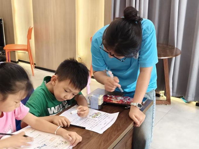 課業(yè)輔導(dǎo)中,成員依據(jù)孩子們的學(xué)習(xí)情況,進(jìn)行一對一或一對多輔導(dǎo),耐心解答疑難問題,梳理知識點、傳授學(xué)習(xí)方法,提升學(xué)習(xí)效率。在指導(dǎo)下,孩子們學(xué)習(xí)積極性顯著提高,困惑得到有效解決。