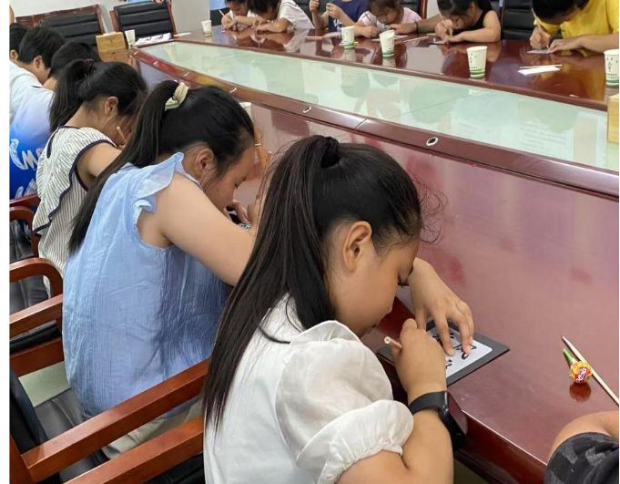 活動現場,志愿者首先向孩子們介紹了金箔畫的歷史淵源和制作工藝。作為湖南省級非物質文化遺產,金箔畫以金箔為材,通過剪、貼、繪等技法,呈現出流光溢彩的藝術效果。孩子們全神貫注地聆聽,眼神中充滿好奇與期待。