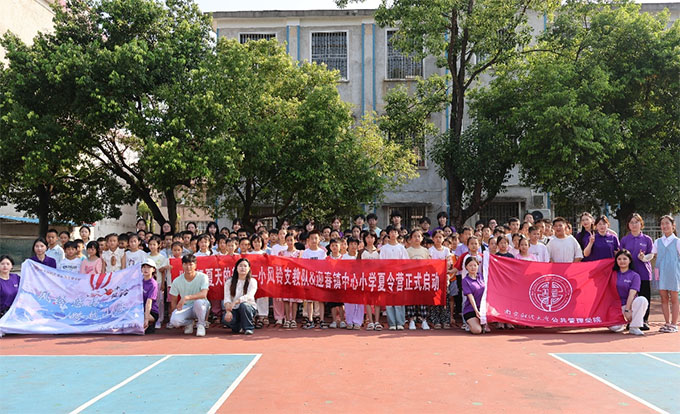 。ㄍㄓ崋T:周丹情、侯雪)7月8日上午,陽(yáng)光灑滿湖南省郴州市宜章縣迎春鎮(zhèn)中心小學(xué)的操場(chǎng),南京財(cái)經(jīng)大學(xué)小風(fēng)鈴支教隊(duì)暑期支教開(kāi)營(yíng)儀式在此正式啟幕。支教隊(duì)全體隊(duì)員與在校學(xué)生齊聚一堂,共同迎接這場(chǎng)跨越千里的教育之約。迎春鎮(zhèn)中心小學(xué)相關(guān)領(lǐng)導(dǎo)、小風(fēng)鈴支教隊(duì)隊(duì)長(zhǎng)及學(xué)生代表先后發(fā)言,為即將開(kāi)啟的兩周夏令營(yíng)注入溫暖與期待。