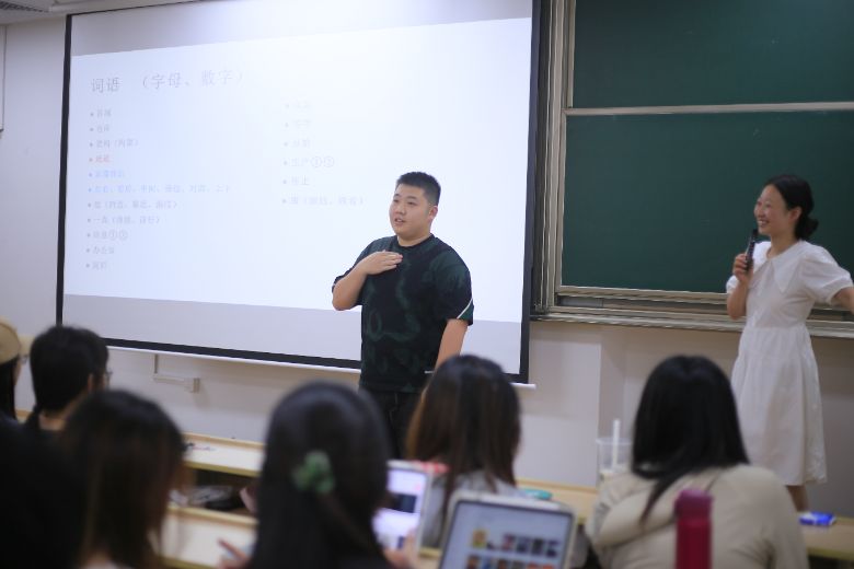 教學(xué)過程中,同學(xué)們學(xué)習(xí)熱情高漲。面對(duì)手語動(dòng)作的精細(xì)要求和與口語表達(dá)完全不同的思維方式,大家認(rèn)真觀察老師的每一個(gè)手勢(shì),反復(fù)模仿練習(xí)。課程設(shè)置了現(xiàn)場(chǎng)提問、個(gè)人展示等環(huán)節(jié),同學(xué)們互相糾正動(dòng)作,嘗試用剛學(xué)到的手語進(jìn)行簡單對(duì)話,為后續(xù)與殘障群體交流互動(dòng)筑牢基礎(chǔ)。