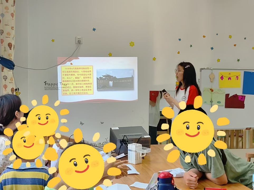 活動中,實踐團(tuán)成員生動講述還原歷史,從新四軍組建講起,到上海根據(jù)地斗爭,再到辦事處同志奔走籌物資、聯(lián)絡(luò)點培育革命力量,把艱辛與熱血一一呈現(xiàn)。講完歷程,又以史料照片、故事片段加深觸動,讓孩子們在聽故事、悟精神的互動里,燃起對革命先輩的崇敬,讓新四軍抗戰(zhàn)精神在新一代心中牢牢扎根。