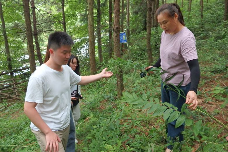 麥芽藥業有限公司作為炎陵縣中藥材產業的龍頭企業,已建成4個種植基地,總面積超過7000畝,主要種植黃精、玉竹、山蒼子等中藥材。該公司采用“公司+合作社+農戶”的合作模式,回收農戶種植的藥材,帶動當地農戶增收致富。此外,企業還探索“中藥材種植+研學+產品開發+文旅”融合模式,規劃建設“百草園”項目,推動中醫藥文化與康養旅游結合。然而,企業在產業鏈延伸過程中仍面臨炎陵縣勞動力短缺、中草藥種植加工投入大等問題,需依托政策支持與多方協作解決。調研期間,實踐團成員深入公司黃精種植基地,實地察看了黃精的生長環境和種植情況;刎撠熑讼虺蓡T們詳細介紹了黃精的種植技術、生長周期以及藥用價值。成員們現場觀察到,黃精植株長勢良好,基地通過科學管理和標準化種植,確保了藥材品質的穩定性。