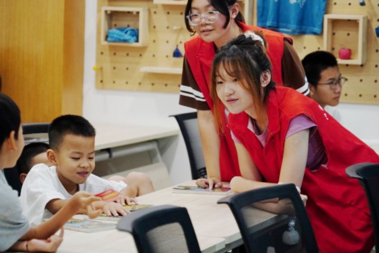 公益輔導廣覆蓋:通過在社區廣場、公園等人流密集區設攤宣講、發放彩色海報、入戶講解等方式,向居民普及面向4-16歲青少年的暑期公益性輔導班、以及老年群體的公益性輔導班課程,涵蓋乒乓球、手工、課業輔導等課程。