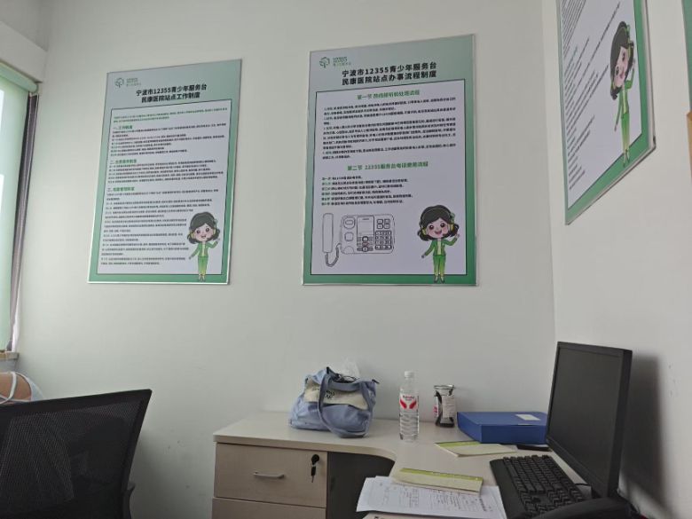 而另一部分小組成員,則來到了民康醫院心理科門診,與謝醫生一起幫助需要心理服務的青少年。在12355青少年服務臺旁,謝醫生交代小組隊員具體的求助來電處理及電話咨詢的流程,包括錄音、研判來電者情況(是否需要進行報警)、心理問題處理等,使隊員對整個流程有了清晰的認識。謝醫生在面對青少年求助者時所展現出的耐心、敏銳判斷力以及富有同理心的溝通方式,讓學子們對心理咨詢有了更加立體和真實的理解。這些真實的互動,讓隊員們更加堅定了投身心理健康事業的信念。