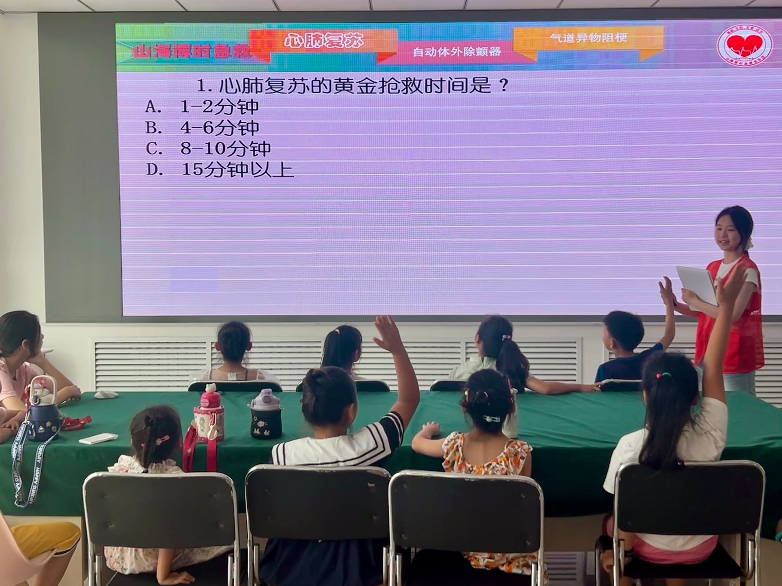 2025年7月12日,山東大學(xué)(威海)山海博時急救宣傳團走進山東省威海市怡園街道濱州街社區(qū),以“救在身邊,安全一夏”為主題,為轄區(qū)小朋友帶來一場兼具知識性與趣味性的急救科普活動,用專業(yè)行動筑牢暑期安全防線。