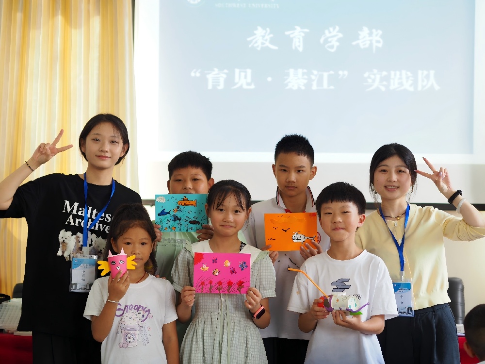 2025年7月10日,西南大學(xué)教育學(xué)部“育見·綦江”研究生實踐團隊在綦江區(qū)打通鎮(zhèn)大石壁社區(qū)活動中心開展科學(xué)小實驗和手工創(chuàng)作主題活動。為期六天的暑期社會實踐迎來最后一天,團隊成員通過“指紋探秘科學(xué)實驗”、“你畫我猜和蘿卜蹲游戲”、“創(chuàng)意手工”三大主題活動為孩子們打造沉浸式學(xué)習(xí)體驗,在歡笑聲中完成實踐育人接力棒的傳遞。