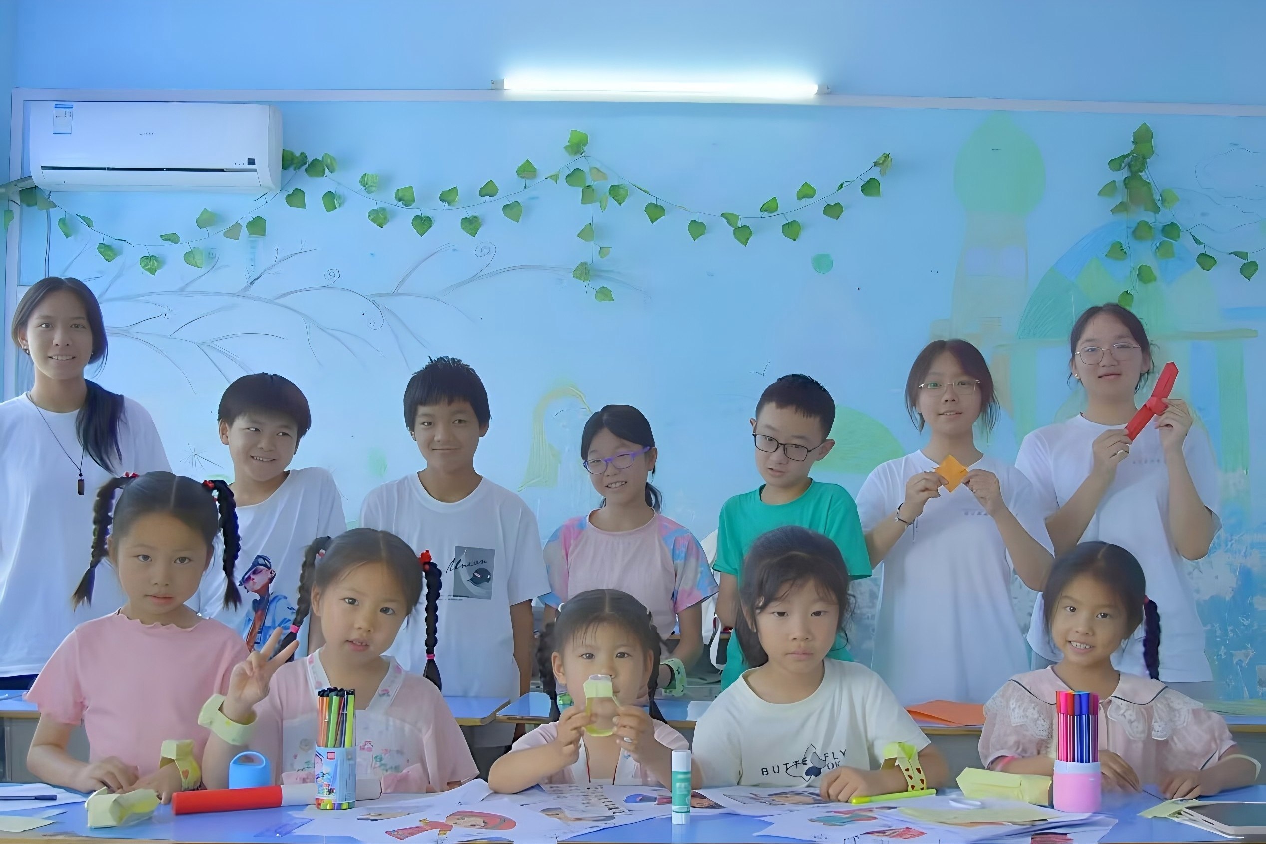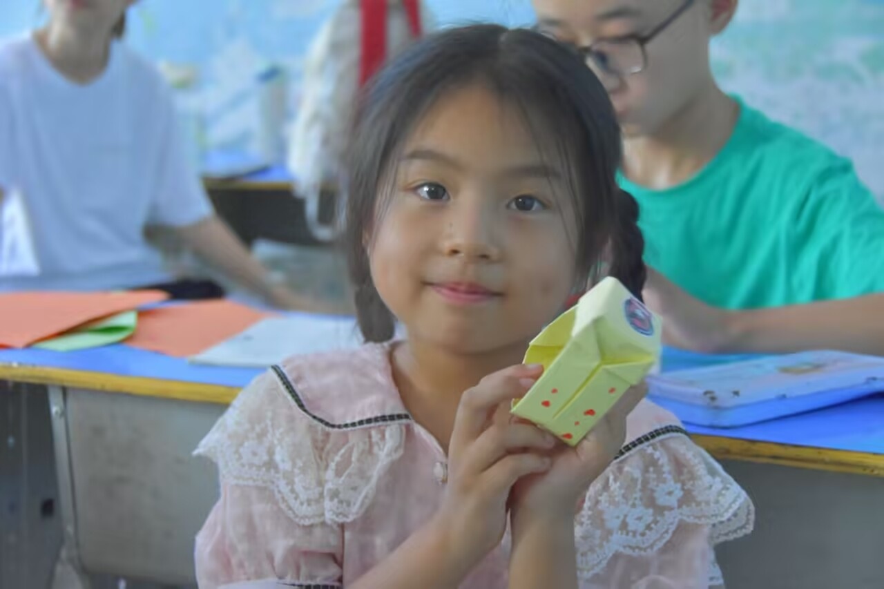 七日支教潤童心 鳶飛載夢向未來毛主席曾說"一萬年太久,只爭朝夕",七天的時間過的很快,轉眼間就到了告別的日子。回顧這七天,在隊員卜祥吉的悉心教導下,同學們已經可以正確拿起毛筆有模有樣地寫出簡單的毛筆字,孩子們的進步讓志愿者倍感欣慰; 在手工課程教學中,志愿者岑婧琪則采用分步示范教學法,指導學生完成千紙鶴,小螃蟹,卡通手表等折紙作品。托管中心教師表示,這類課程顯著提升了學生的動手能力和空間想象力,大大豐富了孩子們的課外活動,受到廣泛好評。