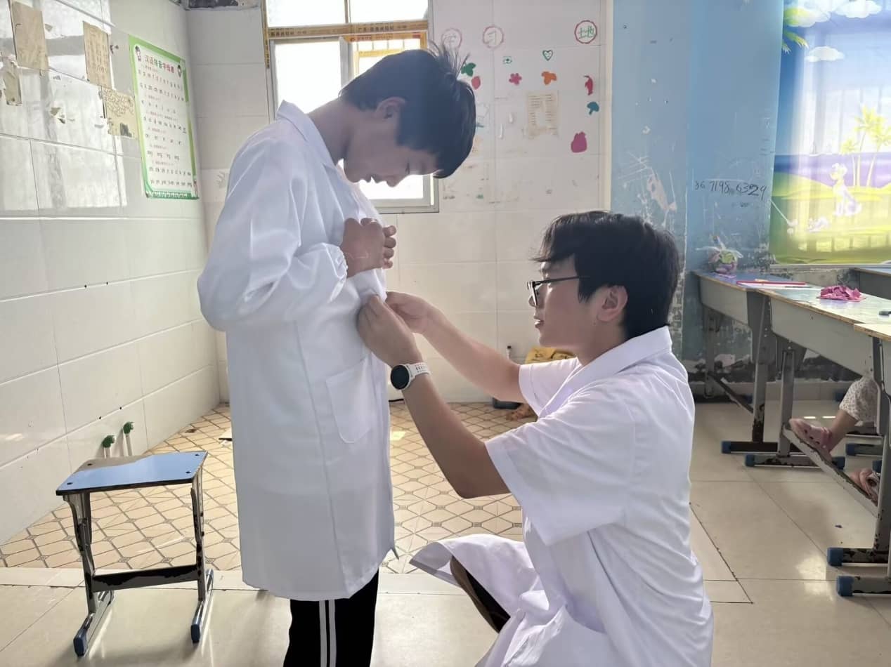 像這樣的課程還有很多,而最令人動容的是,醫學體驗課在孩子們心中播下了夢想的種子。通過模擬聽診、急救演示等互動教學,不少孩子課后悄悄告訴老師:"我長大后也要當醫生!"這一句話令隊員們欣喜萬分,更與志愿服務隊的初衷相符:以醫學專業特長為依托,通過"三個傳遞"(傳遞醫者仁心、傳遞職業理想、傳遞成長希望)助力鄉村教育發展。