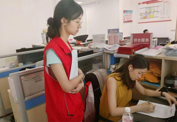 圖為實(shí)踐隊(duì)員對(duì)社區(qū)工作人員進(jìn)行問卷調(diào)查。張子涵 供圖
