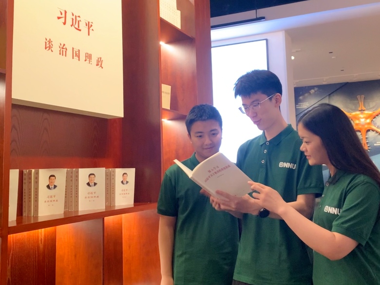 留言寄志明心,續(xù)寫紅色華章在參觀過程經(jīng)過“習(xí)近平總書記談治國(guó)理政”讀物展區(qū)時(shí),隊(duì)員們圍站在一起認(rèn)真閱讀總書記關(guān)于教育的重要論述。“培養(yǎng)什么人、怎樣培養(yǎng)人、為誰培養(yǎng)人是教育的根本問題。”“要把立德樹人作為教育的根本任務(wù),培養(yǎng)德智體美勞全面發(fā)展的社會(huì)主義建設(shè)者和接班人。”一字一句的品讀中,大家不時(shí)交流感悟,深刻體會(huì)其中的內(nèi)涵。作為師范院校的學(xué)子,這些論述讓他們更加明確了未來投身教育事業(yè)的方向——不僅要傳授知識(shí),更要以紅船精神為指引,在教書育人中傳承紅色基因,引導(dǎo)學(xué)生樹立正確的世界觀、人生觀、價(jià)值觀。
