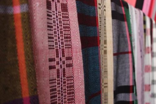 初入長勝街,一間陳列著斑斕織錦的紅安大布店鋪便抓住了我們的視線。店內,色彩濃郁、紋樣古樸的大布無聲陳列,大家對精美的紅安大布毫不吝嗇贊美之詞。