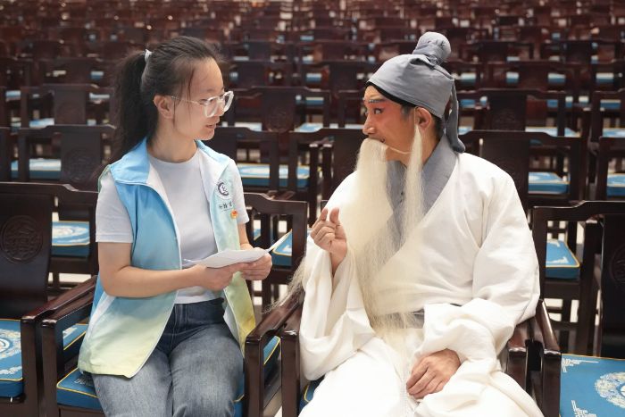 漢劇新章,攜手共拓傳承新程。表演結束后,團隊成員與主演圍繞漢劇活態傳承與青年傳播展開深度訪談。雙方先是聚焦漢劇當下的傳統劇目留存情況、技藝傳承脈絡及受眾群體構成等實際狀況,剖析其在當代社會語境中面臨的機遇與困境以呈現傳承現狀的全貌,深入探討在堅守藝術本體特質的前提下如何平衡傳統與現代、在內容表達與形式呈現上實現突破以及應對市場需求變化時遇到的難點,直面創新過程中的種種挑戰,而后結合實踐經驗就人才培養機制、傳播渠道拓展、與其他藝術形式的融合路徑等提出具有建設性的思考,形成富有價值的觀點建議。