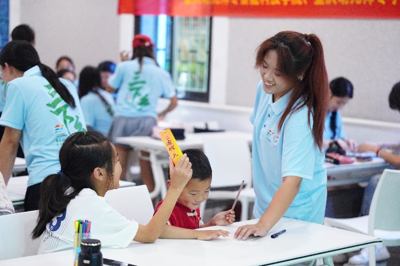 圖為一位學(xué)會(huì)普通話的孩子與實(shí)踐團(tuán)成員順暢交流的瞬間。