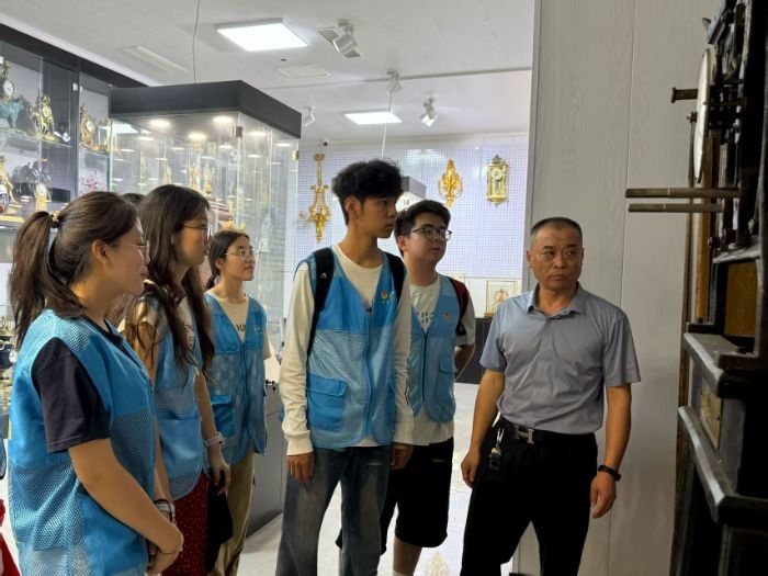 之后,志愿者們參觀了東昌銅鑄雕刻技藝展示區(qū),現(xiàn)場有專門人員進行講解,大家不僅欣賞到傳承人打造的銅鑄鐘表,其工藝精湛、造型壯觀,更通過講解了解到銅鑄雕刻的技藝特點與文化價值,直觀感受到非遺技藝的深厚底蘊。