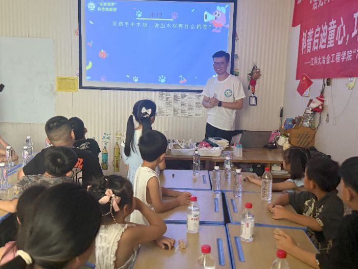 為普及科學知識,提升兒童科學素養,6月29日,江蘇科技大學張家港校區蘇州理工學院“冶光童夢”科普實踐團走進帝景豪苑旁的品思托管中心,開展以“探索生活材料奧秘”為主題的科普實踐活動。實踐團成員朱宇輝擔任主講人,通過豐富的教學形式與互動環節,為小朋友們帶來了一場生動的材料科學啟蒙課。