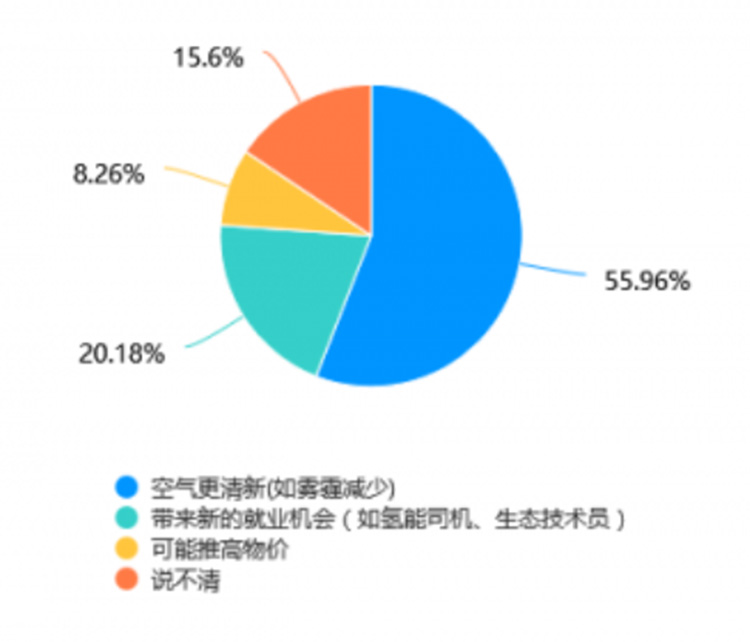 調查結果顯示,55.96%的受訪者認為綠色轉型會使空氣更清新,尤其是霧霾減少。這表明公眾對環境改善的期待較高,反映出人們對空氣質量的關注。