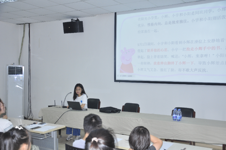 法律辨析環(huán)節(jié),團隊成員為孩子們講解校園欺凌案例 劉軒豪攝
