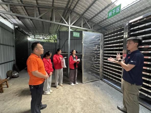 接著,隊員們來到廣西師范大學投資興建的竹筍加工廠。這座新建工廠雖未正式投產,但其內部的清洗、切分、烘干、包裝、展示、儲存六大功能區域規劃清晰,分工明確。其中,烘干區的靜電場烘干設備已完成安裝調試,其工作原理是通過高壓靜電場使竹筍水分快速蒸發,較傳統熱風烘干能耗降低約25%,烘干周期縮短至12小時;包裝區則聯合廣西師大設計學院參與設計,旨在突出產品特色。“六大功能區里,清洗區的毛刷清洗機、切片區的分級切菜設備還沒到位,這兩項配齊得12萬元,資金到位后才能試生產。”社嶺村第一書記坦言,工廠投產后計劃先做竹筍干、竹筍醬,再逐步延伸產業鏈,以產業發展為引擎,帶動村域經濟實現整體提升。