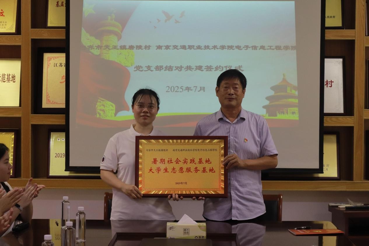 雙方舉行了黨建共建簽約儀式,正式簽署了共建協(xié)議書,并進行“暑期社會實踐基地、大學生志愿服務基地”授牌儀式,這一舉措標志著校村合作邁入新階段 —— 未來將在人才共育、產(chǎn)業(yè)賦能、文化共建等領域展開深度協(xié)作,通過搭建實踐平臺,推動青年學子將專業(yè)知識轉(zhuǎn)化為鄉(xiāng)村發(fā)展的實際動能,促進校村資源雙向流動。