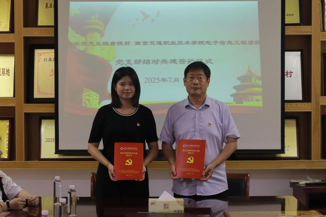 儀式上,劉樹安書記詳細介紹了唐陵村近年來在產(chǎn)業(yè)發(fā)展、社會治理等方面取得的成績。他表示,唐陵村正全力推進數(shù)字化轉(zhuǎn)型,期待以此次黨建共建為紐帶,借助學院的專業(yè)優(yōu)勢,為鄉(xiāng)村治理智能化、農(nóng)業(yè)生產(chǎn)數(shù)字化注入科技活力。吳穎老師介紹了電子信息工程學院的辦學現(xiàn)狀、專業(yè)特色、學生特點等基本情況,強調(diào)學院將以開放姿態(tài)整合教育資源,推動雙方黨建工作與實際需求深度融合,實現(xiàn)互助共贏。