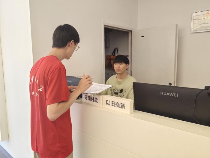 通過和廠家銷售人員的交流互動,團隊成員了解到:電子數碼產品店基本都有實行“以舊換新”政策,并大部分都在店內設立了立牌加以宣傳。當隊員們提及政策的效益如何時,有店家笑稱,店里面的手機有將近三分之一都是通過以舊換新賣出去的。對于“以舊換新”政策的看法,店員稱,以舊換新不僅可以替買家省錢,提高新機購買意愿,而且可以提高廠家的銷量,是一舉兩得的實惠政策。