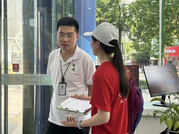 于是團隊成員們帶著提前準備好的調查表,頂著四十度的高溫,穿梭在各個商場之間,與廠家的一線銷售人員溝通交流,了解“以舊換新”政策在各個店家的實施情況。