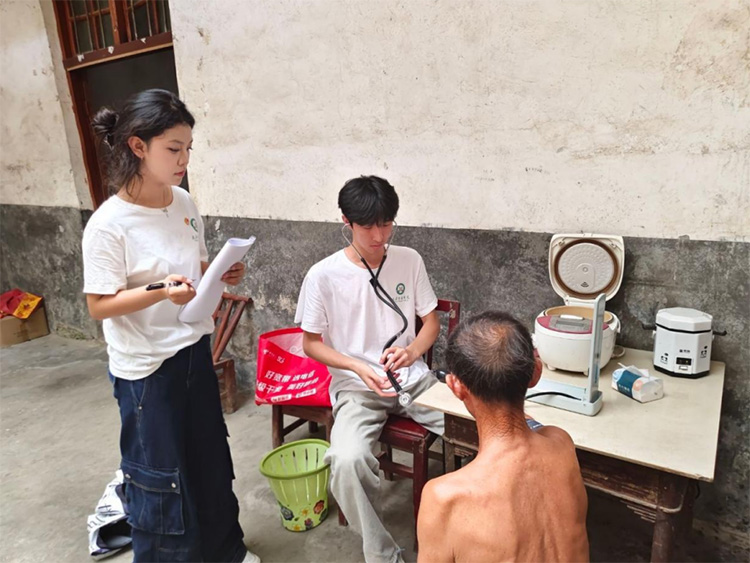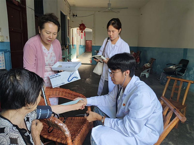 2025年7月13日,武漢東湖學院護理與健康管理學院“凌霄”社會實踐隊走進湖北省咸寧市白霓鎮白露村村。用專業與熱情為鄉村老人送去健康關懷。