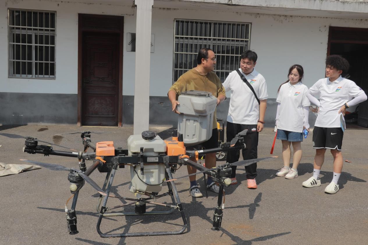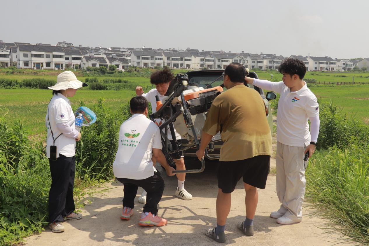 盛夏時節,農作物的病蟲害防治工作進入了緊要階段。為讓青年學子近距離觸摸智慧農業的前沿脈搏,親身感受新農人扎根田野的創業實干精神,“翼展青疇,航耘句土,共拓農桑富路” 實踐團特地拜訪了句容市優秀新農人代表夏洪宇。在他的悉心指導下,實踐團成員深入天王鎮唐陵村田間地頭,順利完成了一次專業的無人機植保飛防作業,為當地農耕生產注入科技活力,也為自己上了一堂生動鮮活的 “科技興農” 實踐課。