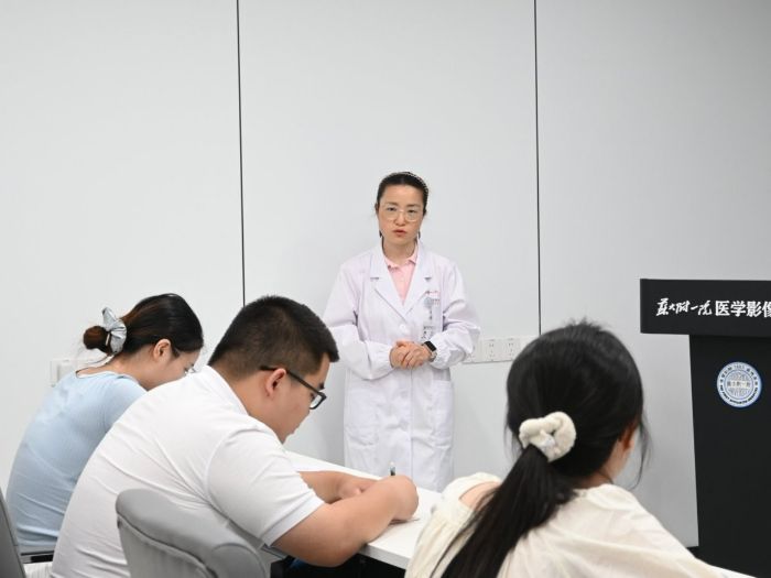 為深入探討智慧醫療項目及前沿醫學技術的實際成效和發展前景,實地探索放射科智能化建設與醫改政策實施情況,學習AI輔助診斷、大數據等技術在放射診療中的創新應用狀況,為醫學生理解行業變革提供新視角。7月7日下午,“影像新聲代,研學科普進行時”實踐團積極響應國家“互聯網+醫療健康”戰略部署及江蘇省深化醫改政策要求,走進蘇州大學附屬第一醫院放射科開展專題調研。
