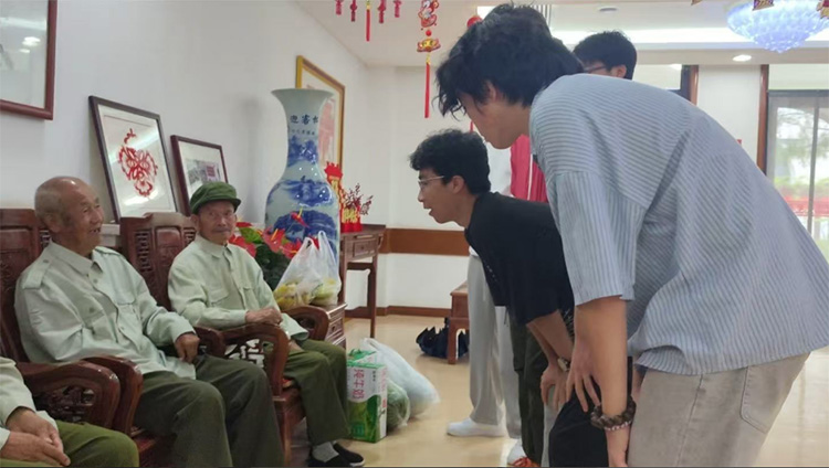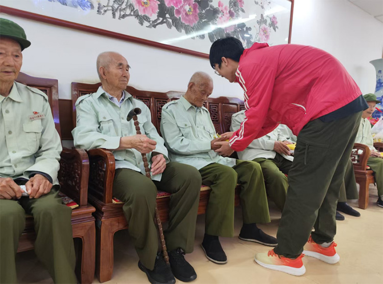互動(dòng)環(huán)節(jié)中,一位參加過抗日戰(zhàn)爭(zhēng)的老兵握住隊(duì)員的手:"現(xiàn)在和平來(lái)之不易,年輕人要珍惜,要為國(guó)家多出力。"質(zhì)樸的話語(yǔ)里,滿是歲月沉淀的家國(guó)情懷。