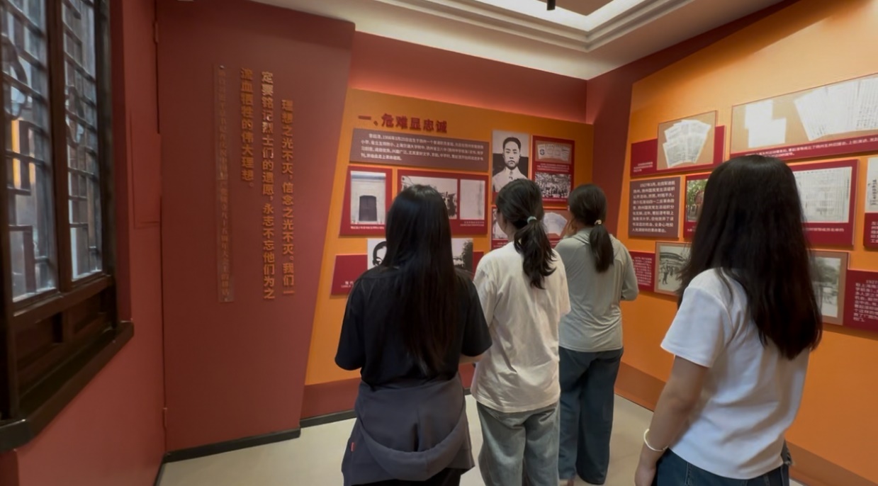 (圖為6月24日“踏訪紅蹤傳薪火,凝聚青志踐初心”團隊成員參觀曹起溍生平事跡館。姜心語供圖)