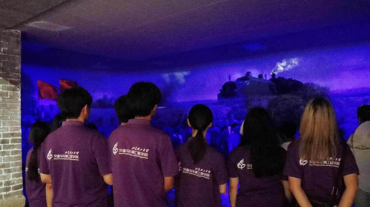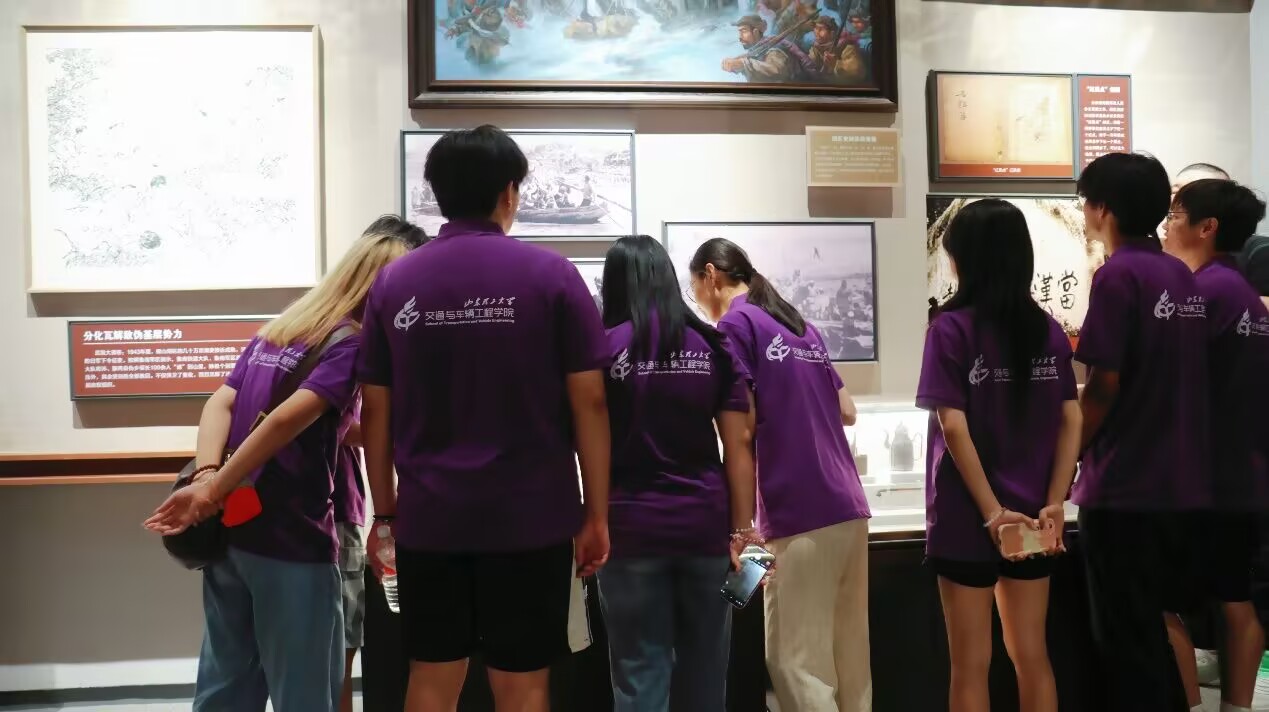 參觀尾聲,實踐團全體成員在鐫刻著“鐵道游擊隊紀念館”的巍峨門楣下莊嚴列隊合影。青灰色的建筑墻體與青年學子堅毅的目光交相輝映,鏡頭定格下歷史與未來的交匯瞬間。離島之際,湖風拂過紀念館頂端的紅五星雕塑,如同當年穿越蘆葦蕩的訊號,將“聽黨話、跟黨走”的信念密碼,深深鐫刻在這群未來交通建設者的心間。他們將帶著微山湖的烽火記憶,在智能交通、裝備制造的新征程上,續寫新時代的“鐵道傳奇”。