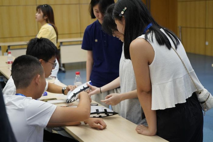 隨后,營員們前往圖書館輔樓,進行船模制作體驗。在船模協會學生志愿者的指導下,營員們分組協作,動手制作船模;顒舆^程中,營員們認真研讀圖紙,完成了船模的部件組裝與調試。該實踐環節有效鍛煉了營員們的動手操作能力與團隊協作精神。